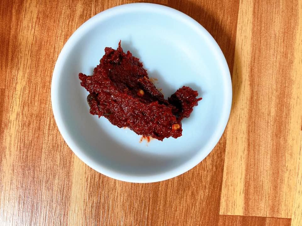 요건 양념장인데 하얀 육수를 시키시는 분들이 약간 얼큰하게 드시고 싶을 때 국물에 넣어서 드시면 될 것 같아요.