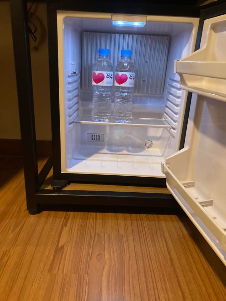 냉장고에 딱 생수 2병 비치되어 있습니다.