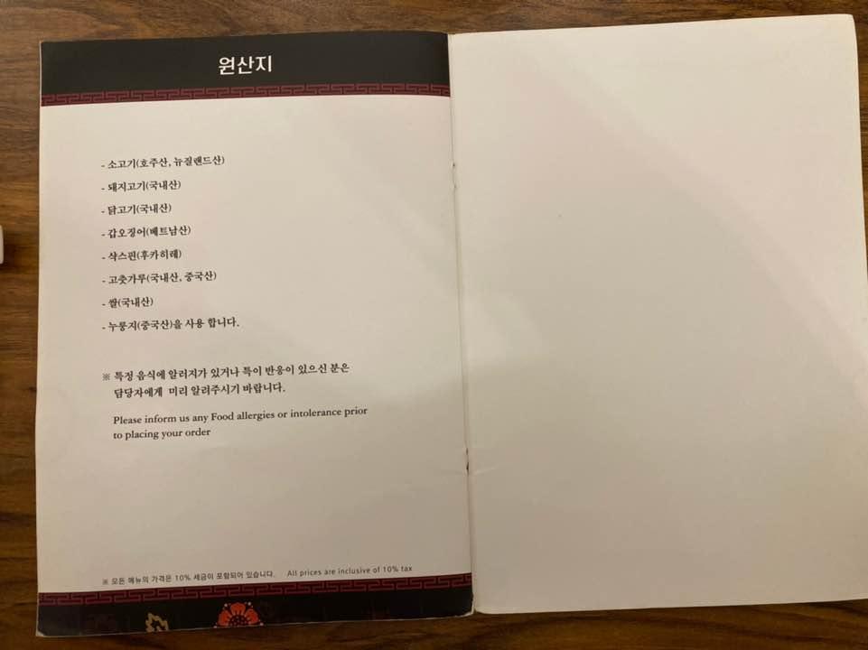 주류도 다양하고 마지막 페이지에는 원산지 표시도 되어있더라고요.