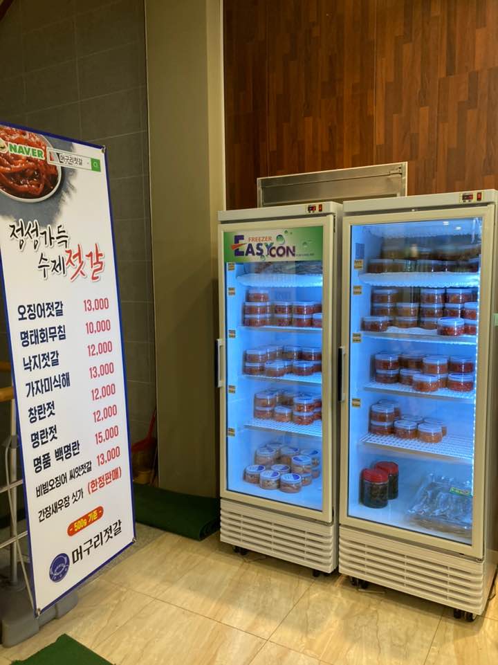 1층 출입문 옆과 근처에 보시면 저렇게 건어물과 젓갈종류!! 여기는 속초지만 강릉 타르트를 파는 것이다!! 왜??