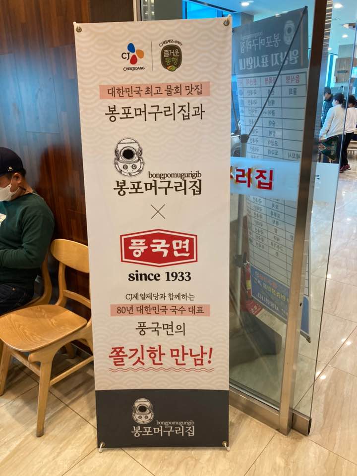 2층 출입문 앞에 cj 제일제당에서 나오는 풍국면과 함께 한다는 포스터도 있었습니다. 아무래도 물회에 나오는 소면을