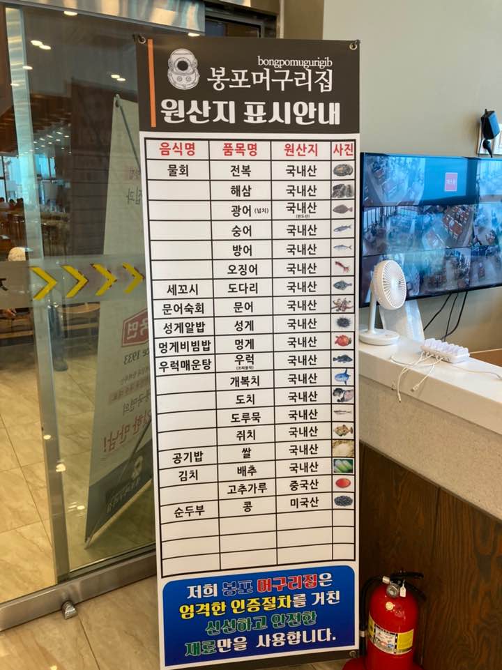 봉포 머구리집 메뉴와 이미지 샷 입니다.