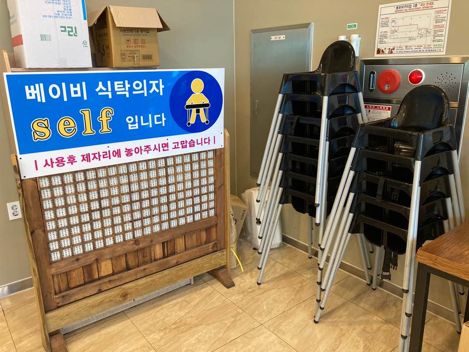 베이비시트도 마련되어 있으나 점원분들이 따로 가져다 주지 않으니 셀프로 사용하시면 됩니다. 2층 출입문 옆쪽에 비치