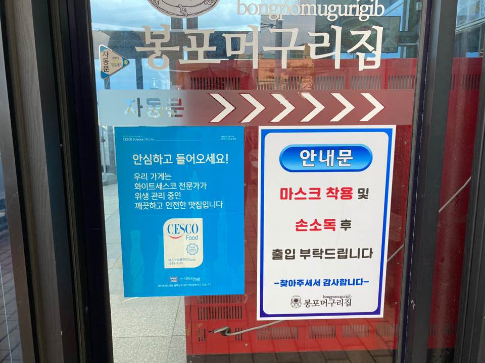 봉포 머구리 집도 코로나는 비켜갈 수 없습니다. 저희가 갔을 때는 웨이팅은 없었지만 웨이팅시에는 이렇게 1미터 간격