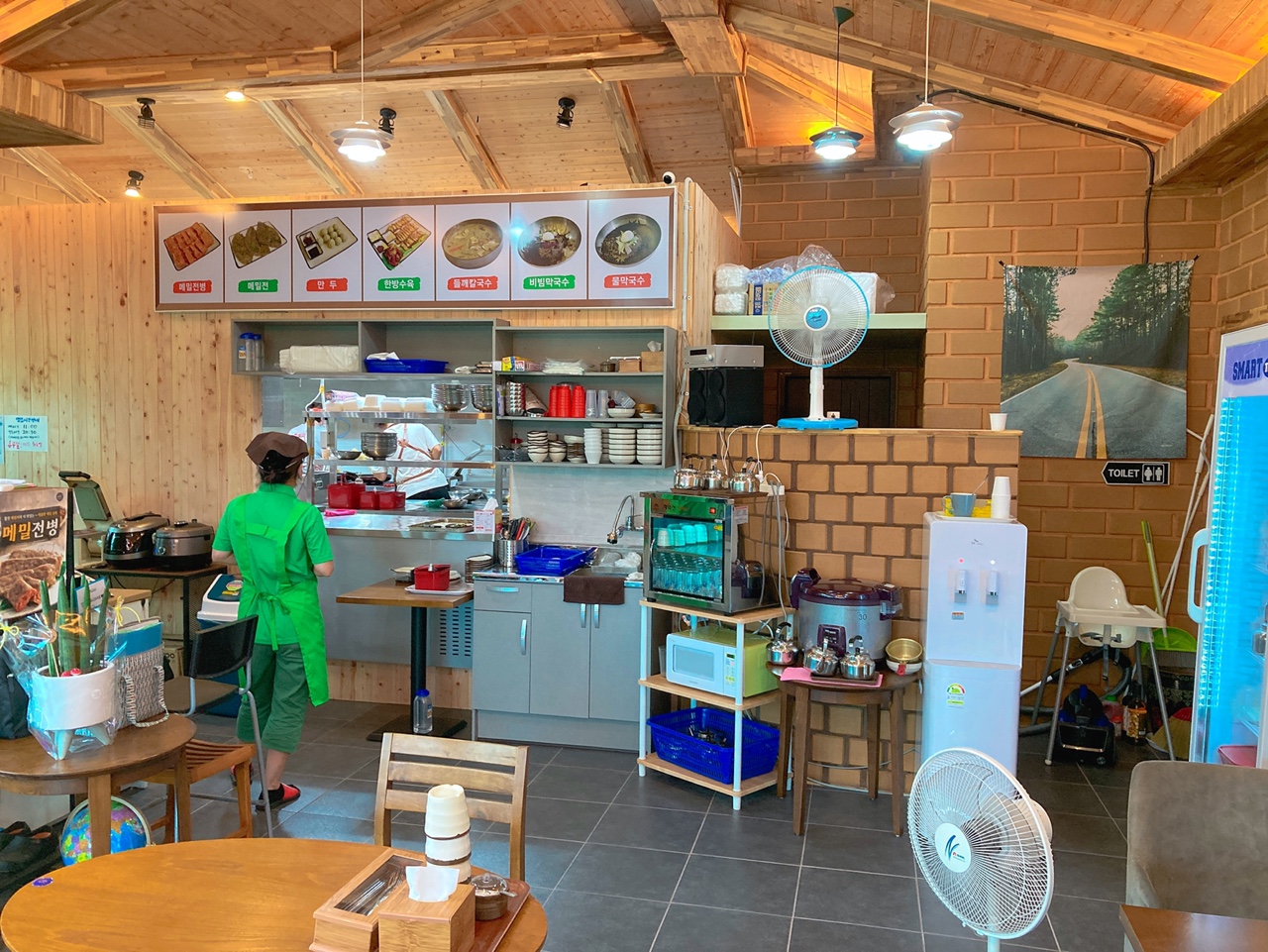 천장이 높고 넓어서 쾌적한 느낌이 들었고 조명도 너무 옛스럽지 않고 목재와 잘 어울려서 내부 인테리어도 괜찮았어요.
