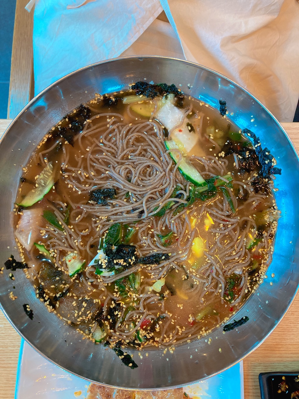 제가 가장 좋아하는 회막국수!!! 와이프는 물 막국수가 먹고싶다고 해서 물막국수와 회막국수 메밀전병, 메밀전 1개씩 시