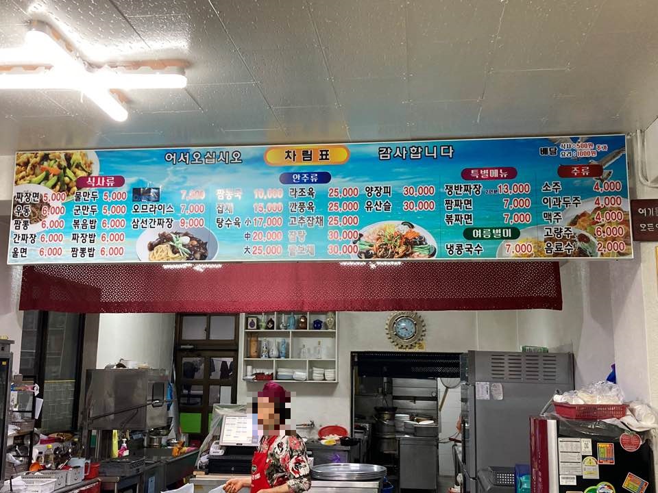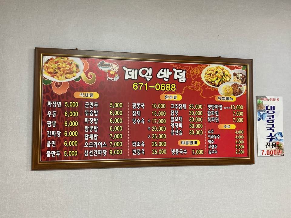 제일반점에 들어서시면 눈에 딱!! 보이는 메뉴판 입니다. 가격은 시중 가격에 비해 엄청 저렴한 편은 아닙니다.